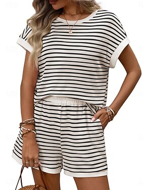 Mujer Conjuntos de dos piezas Conjuntos de pantalones cortos Manga Corta Cuello Barco A Rayas Moda Ropa de calle Casual Diario Exterior Negro Rosa Gris Oscuro Verano Ajuste regular