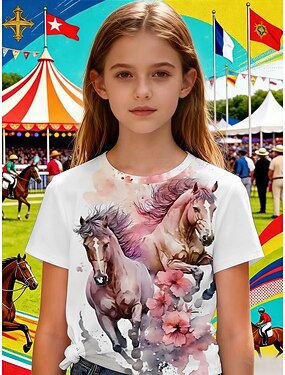 Chica 3D Graphic Caballo Camiseta Manga Corta Impresión 3D Verano Primavera Deportes Moda Ropa de calle Niños 4-12 años Cuello Barco Casual Diario Exterior Ajuste regular