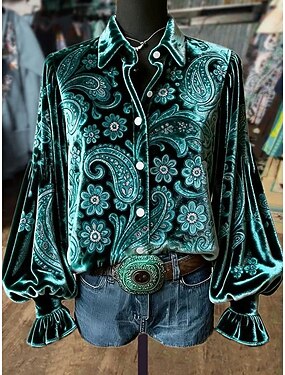 Mujer Camisa Floral Graphic Cachemir Elegante Moderno Casual Manga Larga Cuello Camisero Tops regulares Diario Trabajo Ropa de fiesta de noche Azul Piscina Negro Rojo Verano Primavera Otoño Invierno