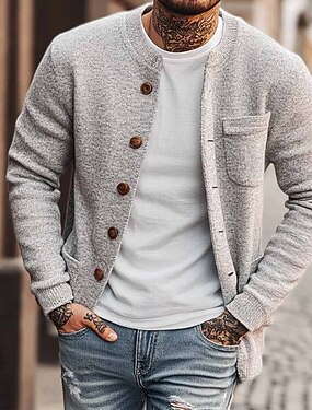 Hombre Pulóveres Chaqueta de Punto Estriado Tejer Tops regulares De Punto Plano Escote Redondo Vacaciones Moda Casual Ropa Cotidiana Ropa Otoño Invierno Gris S M L