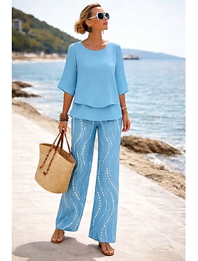 Mujer Conjuntos de pantalones Media Manga Mariposa Escote Redondo Graphic Geométrico Elegante Vacaciones Casual Diario Playa Azul Piscina Rosa Morado Primavera verano Holgado