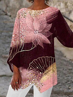 Mujer Camiseta Estampado Floral Moda Moderno Media Manga Escote en Pico Tops regulares Diario Morado Verano