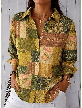 Mujer Camisa Botones Estampado Graphic Cachemir Vintage Elegante Moderno Manga Larga Cuello Camisero Tops regulares Diario Blanco Rojo Morado Naranja Verano Primavera