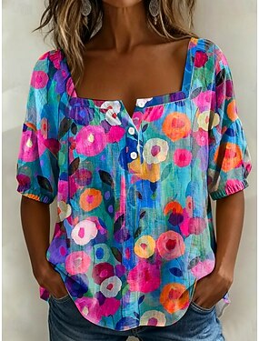 Mujer Blusa Estampado Floral Graphic Diario Elegante Casual Media Manga Escote Cuadrado Tops regulares Casual Diario Blanco Amarillo Rosa Verde Trébol Verano Primavera