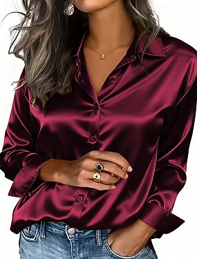 Mujer Camisa Elegant Top de satén Blusa Botones Plano Vintage Elegante Manga Larga Cuello Camisero Tops regulares Festivos Noche Negro Rosa Vino Rojo Azul Marino Verano Primavera
