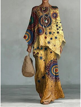 Mujer Camisa Conjuntos de lino y algodón Conjuntos de pantalones Manga Larga Campana Cuello Barco Escote Redondo Graphic Cachemir Estampado Vacaciones Moda Ropa de calle Casual Diario Exterior