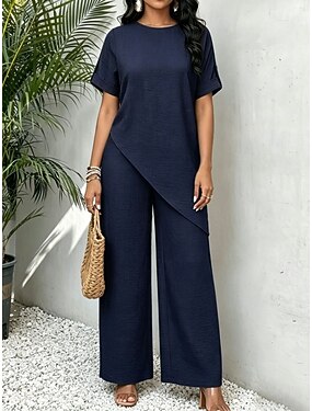 Mujer Conjuntos de dos piezas Manga Corta Escote Redondo Vacaciones Diario Casual Diario Azul Piscina Vino Marrón Verano Holgado