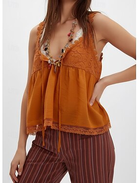 Mujer Blusa Tops de encaje Camiseta sin mangas tipo camisola Retazos Ribete de encaje Plano Diario Elegante Moderno Sin Mangas Escote en U Tops regulares Diario Festivos Noche Negro Blanco Amarillo