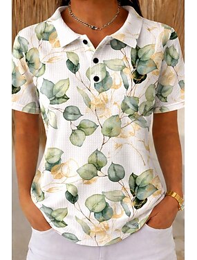 Mujer Camisa Estampado Floral Elegante Moderno Manga Corta Cuello Camisero Tops regulares Diario Festivos Azul Piscina Blanco Gris Verano
