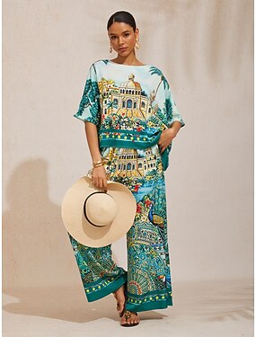 Mujer Camisa Estampado Floral Elegante Manga 3/4 Cuello Barco Tops regulares Diario Festivos Azul Piscina Vino Rojo Morado Verano