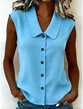 Mujer Blusa Botones Color sólido Diario Elegante Básico Sin Mangas Cuello Vuelto Tops regulares Diario Azul Piscina Negro Blanco Albaricoque Verano Primavera