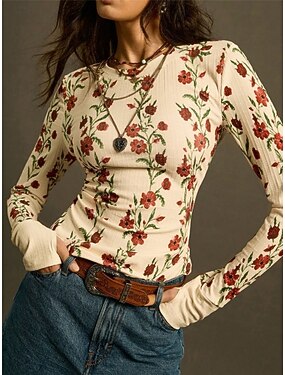 Mujer Blusa Estampado Floral Vintage Elegante Casual Manga Larga Cuello Barco Tops regulares Diario Festivos Vino Marrón Verde Trébol Albaricoque Primavera Otoño
