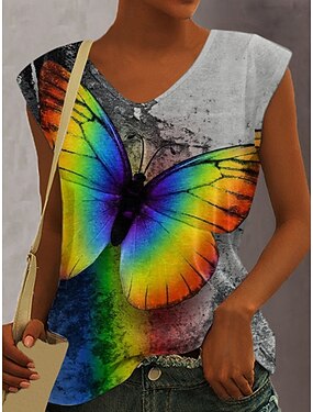 Mujer Camisa camisa boho Blusa Estampado Floral Graphic Mariposa Vintage Elegante Clásico Manga Corta Escote en Pico Tops regulares Diario Festivos Noche Azul Piscina Rosa rubor Blanco Amarillo Rosa