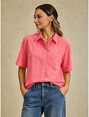Camisa de manga corta para mujer de mezcla de algodón con bolsillo