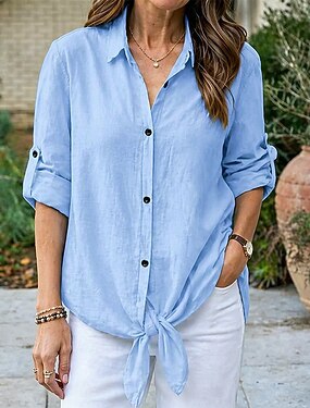 Mujer Camisa Camisa de verano Camisa casual Abotonar la camisa corbata frontal Botones Color sólido Plano Vacaciones Moda Diario Manga 3/4 Cuello Vuelto Tops regulares Ropa de calle Playa Festivos