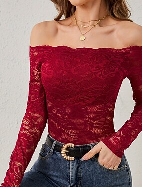 Mujer Blusa Encaje Color sólido Elegante Casual Manga Larga Escote en Pico Tops regulares Diario Blanco Verano Primavera Otoño