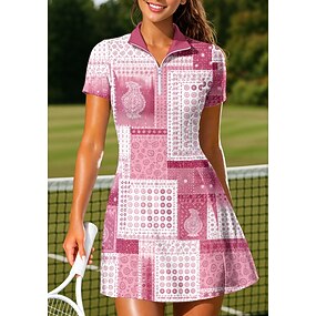 Mujer Geométrico Cachemir Vestido de tenis Vestido deportivo Manga Corta Estampado Transpirable Tenis Golf Bádminton Cuello Cuello de polo Vestidos Rosa Ropa de tenis