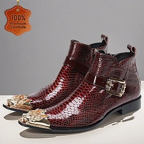 Botines de piel auténtica para hombre con estampado de serpiente y hebillas: calzado estilo gótico punk para fiestas, representaciones teatrales y cosplay.