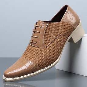 Zapatos Oxford de hombre color camel, tejidos, con cordones, con relieve de cocodrilo, calzado formal de vestir, ideal para bodas, oficina, banquetes, fiestas, iglesia y para un estilo de caballero refinado.
