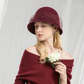 Sombreros 100% lana, sombrero bombín/cloche, sombrero fedora, boda, fiesta de té, elegante retro con tocado de tul.