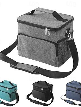 Bolsa térmica para almuerzo con correa ajustable: tela Oxford duradera, reutilizable y reutilizable para la oficina, la escuela y picnic. &Lonchera térmica negra resistente al desgarro para la playa,