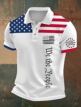 4 de julio de 2026, 250 aniversario Hombre Bloque de color Bandera estadounidense de los Estados Unidos Camisetas polo Polos con botones Camiseta de golf Manga Corta Camisas de polo Diseño Moda Casual