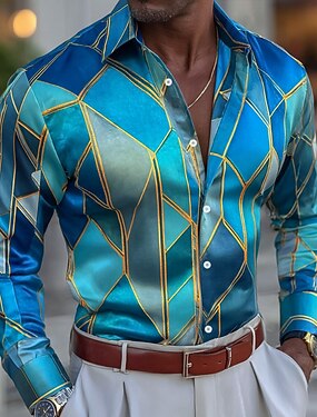 Hombre Arte abstracto Bloqueo de color Camisa de raso camisa de baile Camisa de vestir informal Manga Larga Moda informal Vacaciones Boda Uso Diario Verano Primavera Cuello Vuelto Impresión 3D