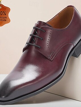 Zapatos de vestir de cuero marrón para hombre: diseño elegante con cordones y detalles clásicos, perfectos para bodas, ropa de oficina y ocasiones formales.