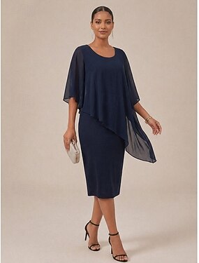 Corte A Vestido Midi Vestido formal Vestidos de coctel Elegante Sin Mangas Escote Barco Boda Formal Jacquard con Plisado