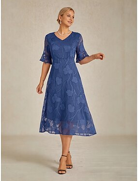 Mujer Vestido Midi Vestido de una línea Cumpleaños Casual Mangas anchas Invitado a la boda Fiesta de Cóctel Ajuste regular Color sólido Floral Plano Manga Corta Escote en Pico Wedgewood Verano