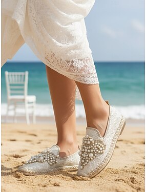 Zapatos de boda planos con perlas de marfil para mujer, elegantes zapatos planos sin cordones para novias en bodas en la playa.