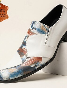Zapatos de vestir blancos estampados para hombre, mocasines formales de punta, calzado elegante para bodas, banquetes, fiestas, graduaciones, actuaciones y ocasiones especiales.