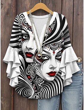 Carnaval Mujer Blusa Estampado Graphic A Rayas Abstracto Bohemia Vintage Diario Manga 3/4 Escote en Pico Tops regulares Diario Festivos Ropa de vacaciones Blanco Verano Primavera Otoño