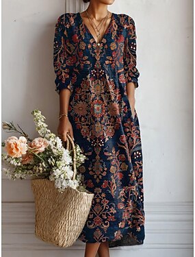 Mujer vestido largo vestido largo Vestido bohemio Vestido de cambio Vestido de verano vestido de playa Bohemia Vacaciones Étnico Playa Festivos Cita Holgado Floral Graphic Abstracto Manga 3/4 Escote