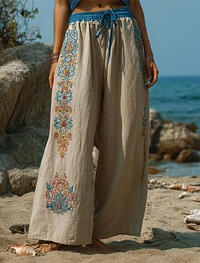Hombre Estampado Floral Étnico Pantalones Pantalones anchos Pantalones casuales Media cintura Boho retro de la vendimia Hogar Exterior Vacaciones Cintura elástica con cordón Pantalones tipo lino con