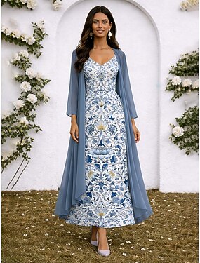 Mujer Conjunto de vestido Vestido de una línea Elegante Vacaciones Floral Graphic Multi capa Estampado Vestido maxi Manga 3/4 Escote en Pico Diario Formal Azul Piscina Morado Naranja Verano Primavera