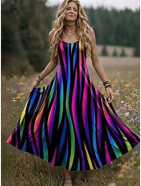 Mujer Vestido maxi Vestido de verano Vestido de una línea Vacaciones Casual Boho Diario Festivos Holgado Graphic Geométrico Tribal Sin Mangas Escote en Pico Negro Verano