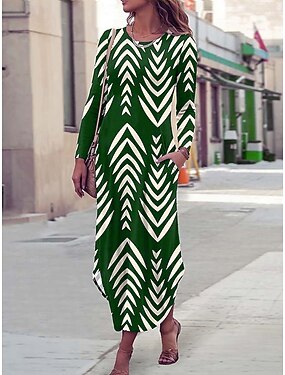 Mujer Vestido maxi Vestido tubo Vestido estilo camiseta Vacaciones Casual Boho Festivos Cita Ajuste regular Graphic Geométrico Abstracto Manga Larga Cuello Barco Cuello redondo Azul Piscina Morado
