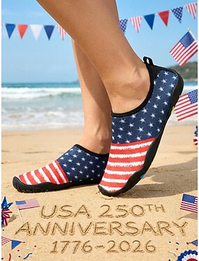 Zapatos acuáticos para mujer conmemorativos del 250.º aniversario de EE. UU.: bandera estadounidense patriótica roja y azul, de secado rápido, ideales para playa, natación, surf y navegación.