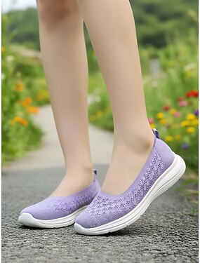 Zapatillas deportivas moradas de punto sin cordones para mujer: calzado ligero, transpirable y cómodo para caminar, ideal para el uso diario, viajes y conjuntos informales.