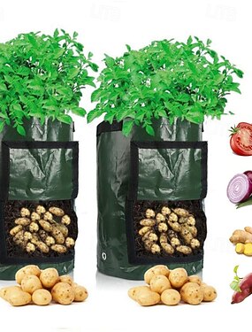 Bolsas de cultivo de patatas, 2 uds., tela impermeable inflable de 4/7/10 galones, jardinera de patatas dulces, ventana, caja de cultivo de cacahuetes y verduras, Cubo de jardín de guardería