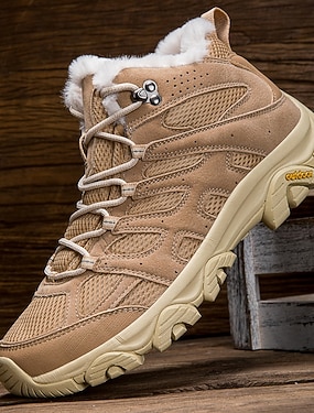 Botas de senderismo impermeables y cálidas para hombre con forro de piel y suela antideslizante, ideales para trekking y acampada al aire libre.
