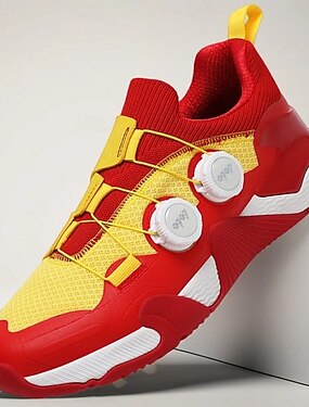 Zapatillas navideñas rojas y amarillas para hombre: elegantes y deportivas, perfectas para salidas navideñas y eventos festivos activos.