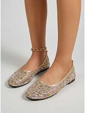 Sandalias de mujer con diamantes de imitación dorados: glamurosos zapatos de verano planos con punta abierta para damas, perfectos para fiestas en la playa, vacaciones y atuendos casuales y elegantes.