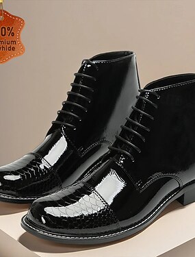 Botines negros de piel auténtica pulida para hombre: diseño elegante y brillante con punta afilada, ideales para eventos semiformales, bodas y ocasiones especiales.