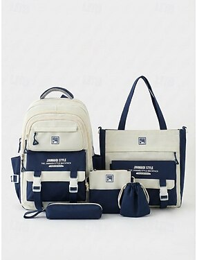Conjunto de 5 piezas para mujer que incluye mochila, bolso y estuche para lápices, material de poliéster, varios colores, gran capacidad, correas ajustables, ideal para la vuelta al cole, viajes,