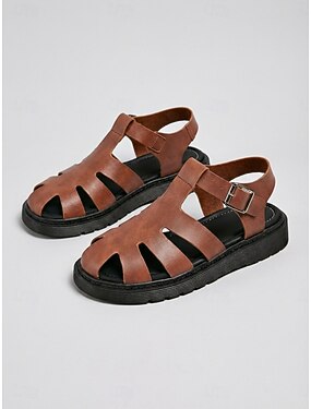 Sandalias marrones cerradas para mujer – sandalias gladiadoras informales con hebilla ajustable, calzado de verano para caminar y viajar. &uso diario
