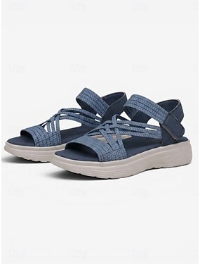 Sandalias cómodas con tiras azules para mujer: sandalias deportivas ligeras para paseos al aire libre, viajes, vacaciones y uso diario.