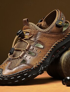 Sandalias marrones para hombre, de exterior, con puntera cerrada, transpirables, con aberturas, cómodas para caminar, ideales para viajes, acampadas, vacaciones de verano, aventuras al aire libre y uso diario informal.