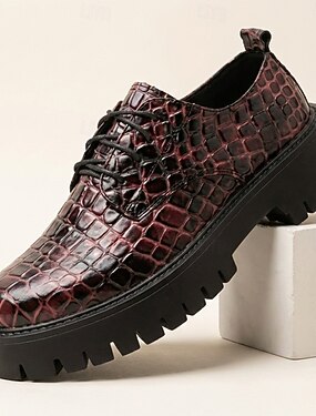 Zapatillas deportivas casuales para hombre color burdeos con relieve de cocodrilo, cordones, suela gruesa, cómodas para caminar, calzado bajo de moda para uso diario, viajes, salidas de fin de semana y un estilo casual elegante y llamativo.